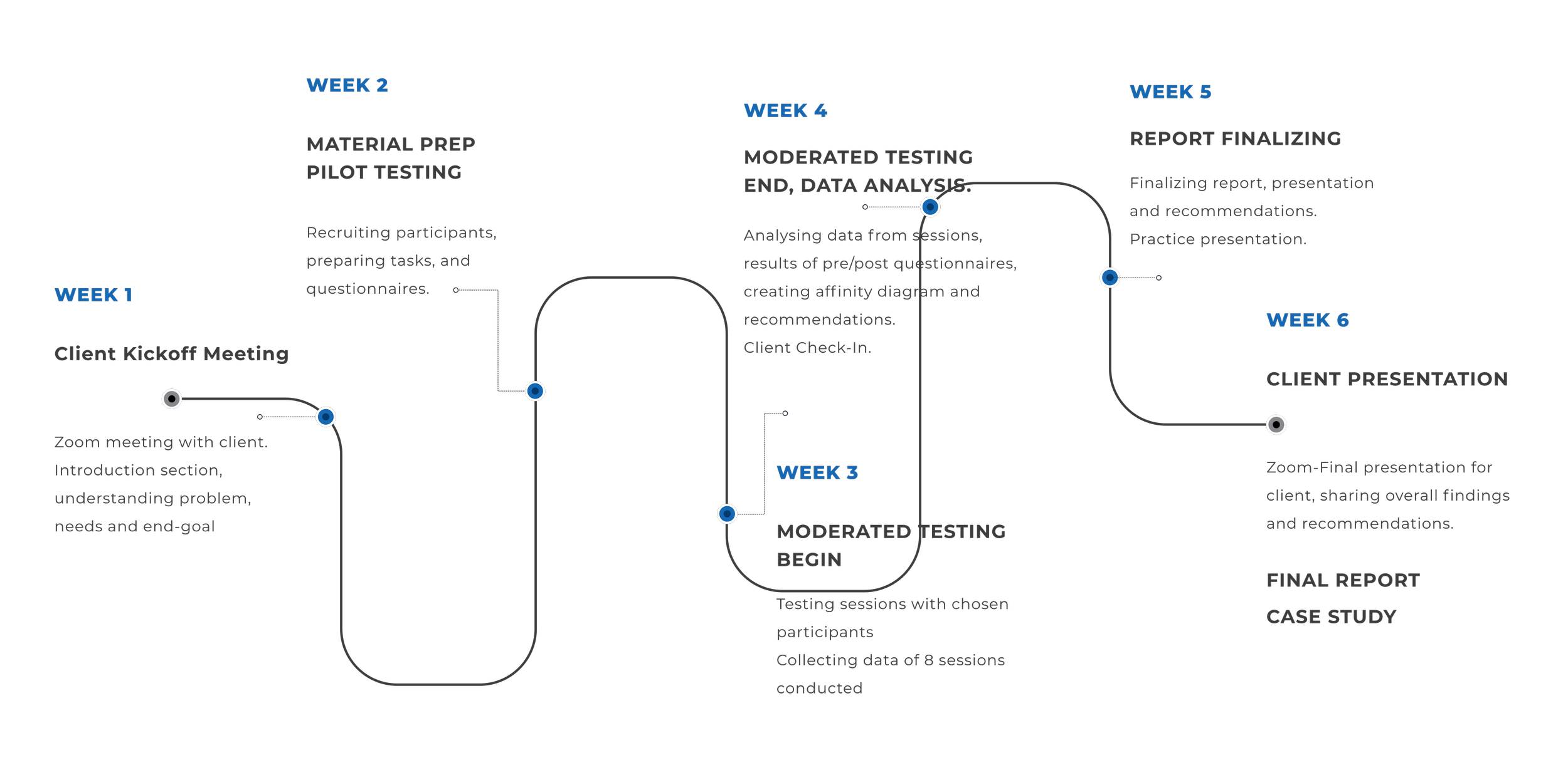 Role Recruiting Participants, Questionnaires, Executive Summary & Conclusion of user test report, Client Presentation Design, UX Researcher, User Testing, UI Design (Recommendations), Data Analysis